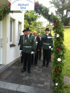 15.30 Uhr Abholen des Königspaares (Marschweg: Sammelplatz Sophienweg – Lagerstraße – Hardtstraße – Abholen des Königspaares mit Vizekönig – Lagerstraße, Weingasse – An Klocken Kapelle – Pulverturmstraße – Gebkestraße – Lagerstraße – Vorbeimarsch Sparkasse – Waldstraße – Von-Westphalen-Straße – Festzelt)