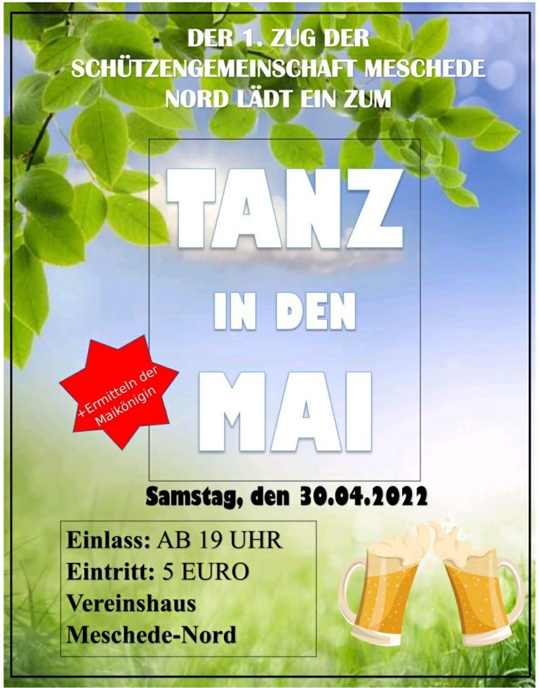 Nach langer Zeit freuen wir uns, euch endlich wieder zu einer Veranstaltung des 1. Zuges einladen zu dürfen. Am 30. April wollen wir gerne mit euch den Tanz in den Mai im Vereinshaus feiern. Start der Veranstaltung ist um 19 Uhr. In diesem Rahmen werden wir auch wieder eine „Maikönigin“ ermitteln. Über ein zahlreiches Erscheinen würden sich das Gremium des 1. Zuges sehr freuen!